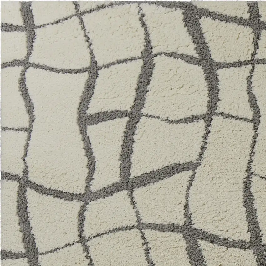 This machine-woven abstract rug offers an aesthetic upgrade to your indoor spaces with its ivory hues. Enjoy its reassuring softness underfoot while its shag texture provides a luxurious feel.