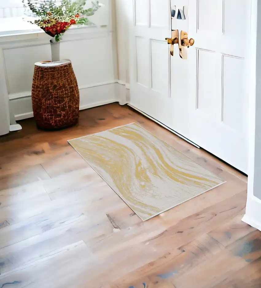 Ivory or Gold Polypropylene Area Rug