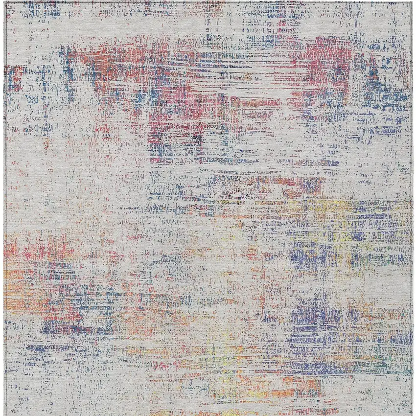 Ivory Orange And Blush Abstract Washable Indoor Outdoor Area Rug