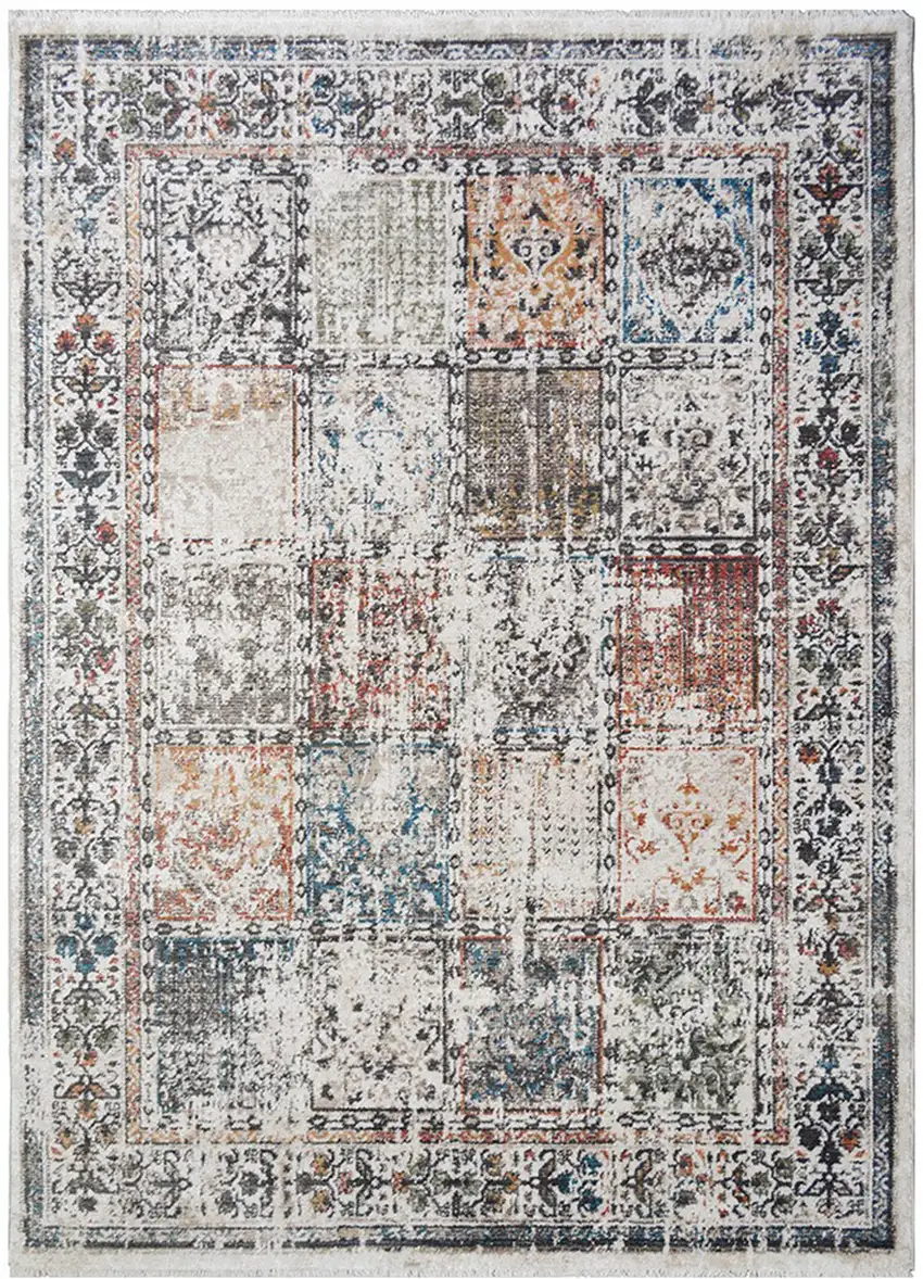 Ivory Oriental Distressed Area Rug With Fringe