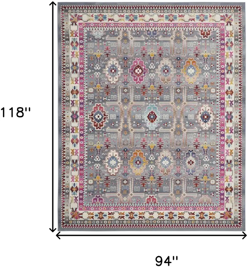 Ivory Pink And Gray Floral Distressed Non Skid Area Rug