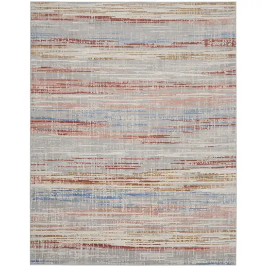 Ivory Red and Blue Abstract Non Skid Area Rug