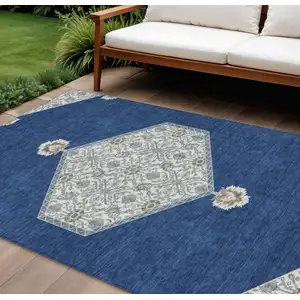 Ivory Red and Blue Abstract Non Skid Area Rug