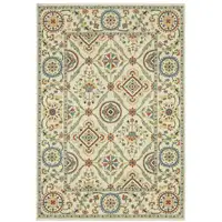 Ivory Red Green Grey Blue And Navy Oriental Power Loom Stain Resistant Area Rug With Fringe