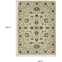 Indulge your senses with the timeless beauty of this Oriental-inspired rug. Its intricate design, featuring a harmonious blend of ivory, salmon pink, gold, blues, grey, rust, and green, is guaranteed to elevate the style of any room. Each color is carefully selected to create a visually captivating masterpiece that serves as a focal point and conversation starter.