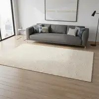 Set an inviting tone in your space with this 3-foot x 5-foot ivory shag distressed area rug. Ideal for spaces with kids and pets, this rug is stain resistant to help repel dirt and spilled liquids. Built to last, this rug crafted from polypropylene fibers is known for its durability and long lasting appeal. Rugs are a great way to showcase your style, hide imperfections, warm your home and reduce noise. This rectangle shaped rug flaunts a ivory color that will be a great way to accent your space. Solid colors are versatile and will blend with any existing decor style. The retro shag construction of this luxurious rug will provide a soft and comfortable barrier to color tile and hardwood floors. This smaller sized, transitional styled rug is just what you need for your walkway, bedside, in front of door, cabinet, refrigerator, or chair. 36-inch h x 60-inch w x 1.54-inch d.