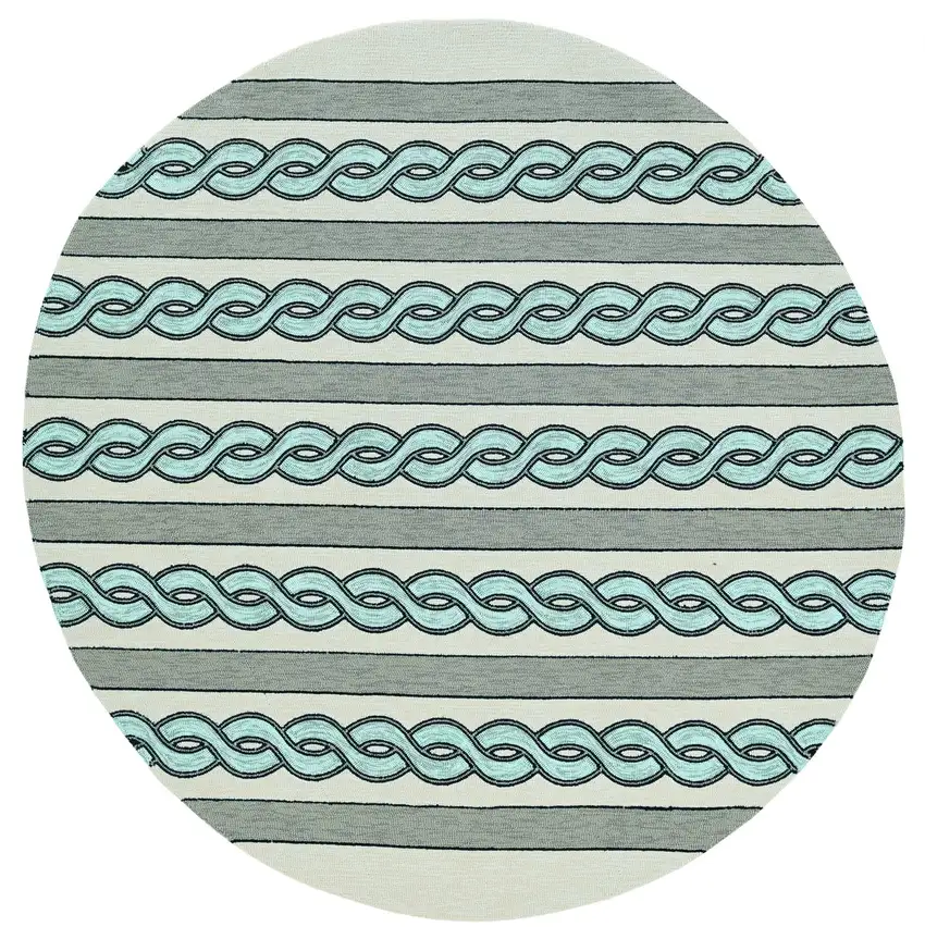 Ivory Spa Hand Hooked UV Treated Cable Stitch Round Indoor Outdoor Area Rug