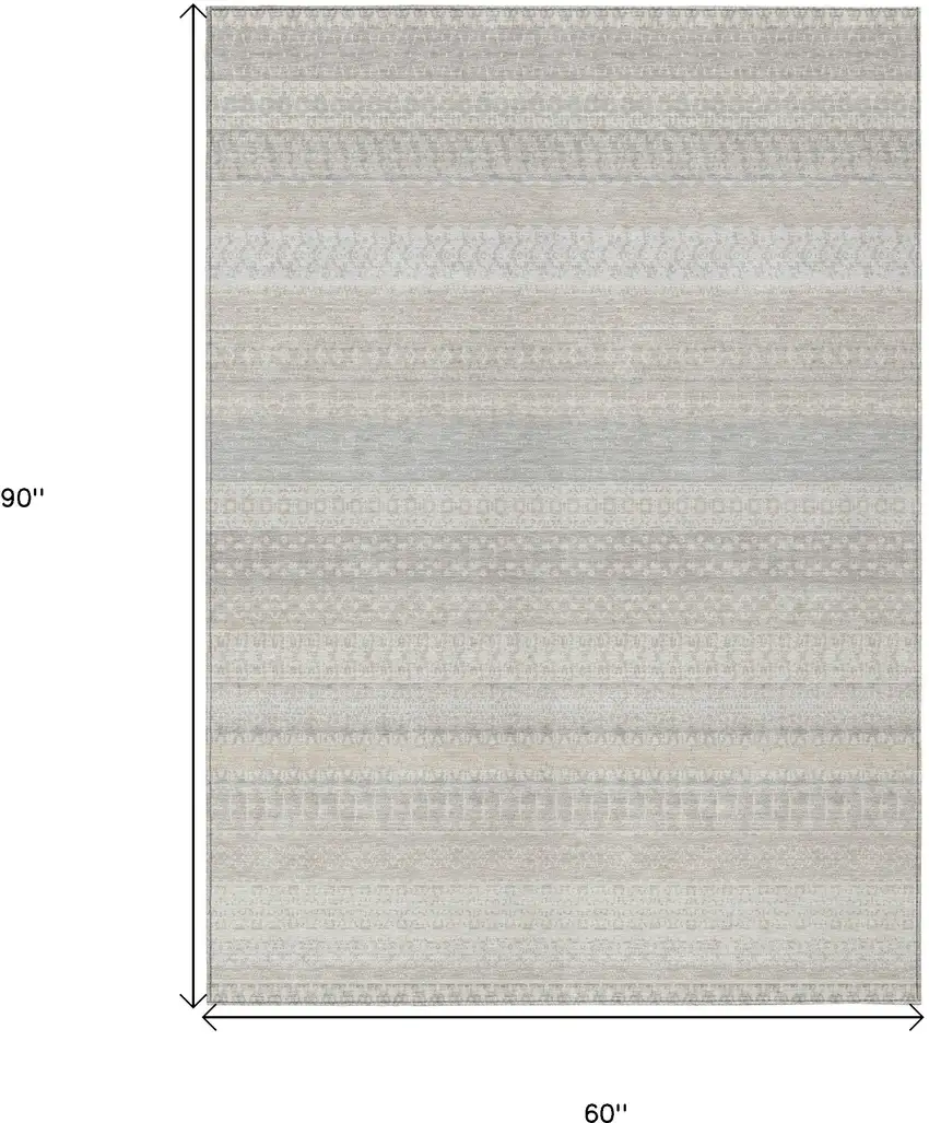 Add great coloration and comfortable texture to your space with this 5-foot x 8-foot ivory striped washable non skid indoor outdoor area rug. This rectangle shaped rug features a striped design that will work well both indoors or out. A classic shape marries with good looking design for your living room, hall, bedroom, porch, patio, or poolside. The coloring of this rug adds a delightfully neutral tone to your home and will easily match with most any decor. Ideal for outdoor spaces or high traffic areas with kids and pets, this rug is made from heavy duty polyester that is stain resistant to help repel water, dirt, and stains. Makes a great way to dress up your patio, porch, or poolside, but also works well as a durable and easy to maintain option in the kitchen, family room, or mudroom. 60-inch h x 90-inch w x 0.19-inch d
