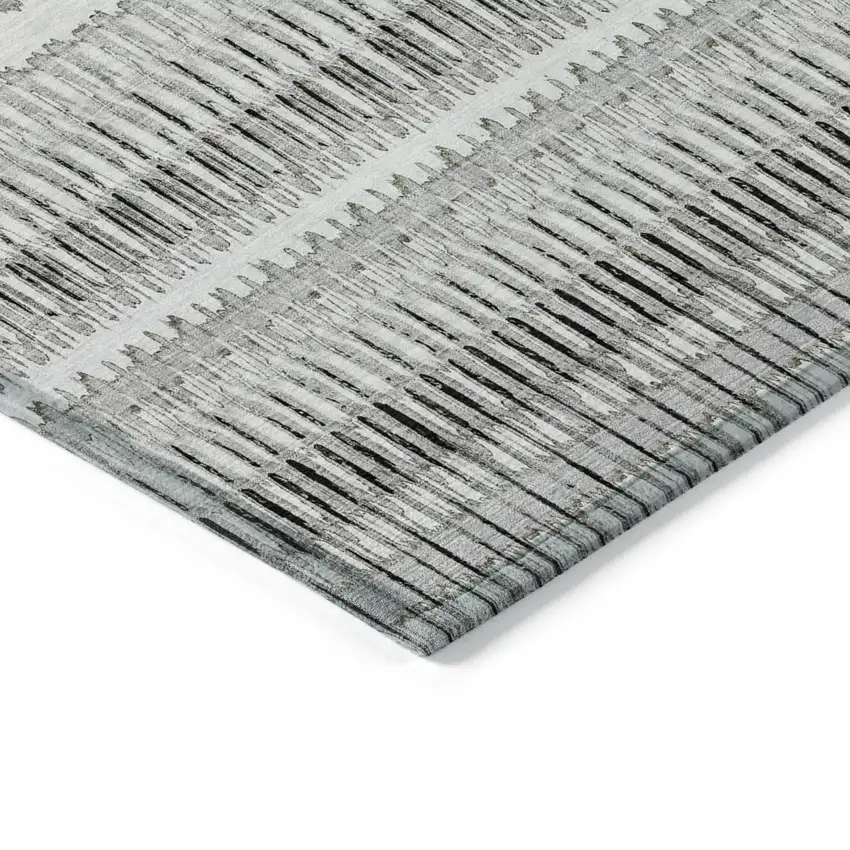 Ivory Striped Washable Non Skid Indoor Outdoor Area Rug