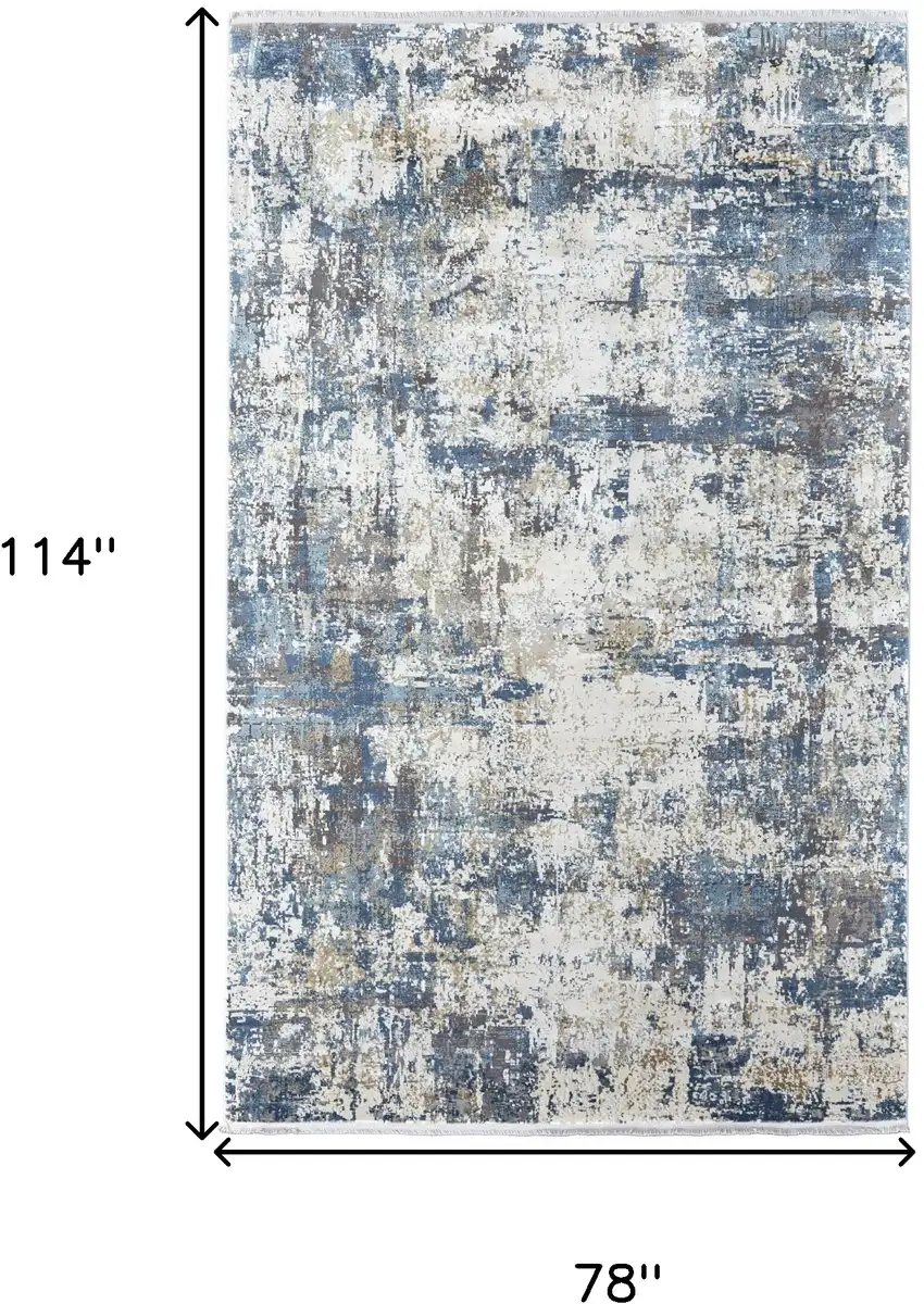 Ivory Tan and Blue Abstract Power Loom Area Rug With Fringe