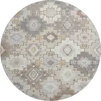 Ivory Tan and Blue Floral Hand Woven Distressed Area Rug With Fringe