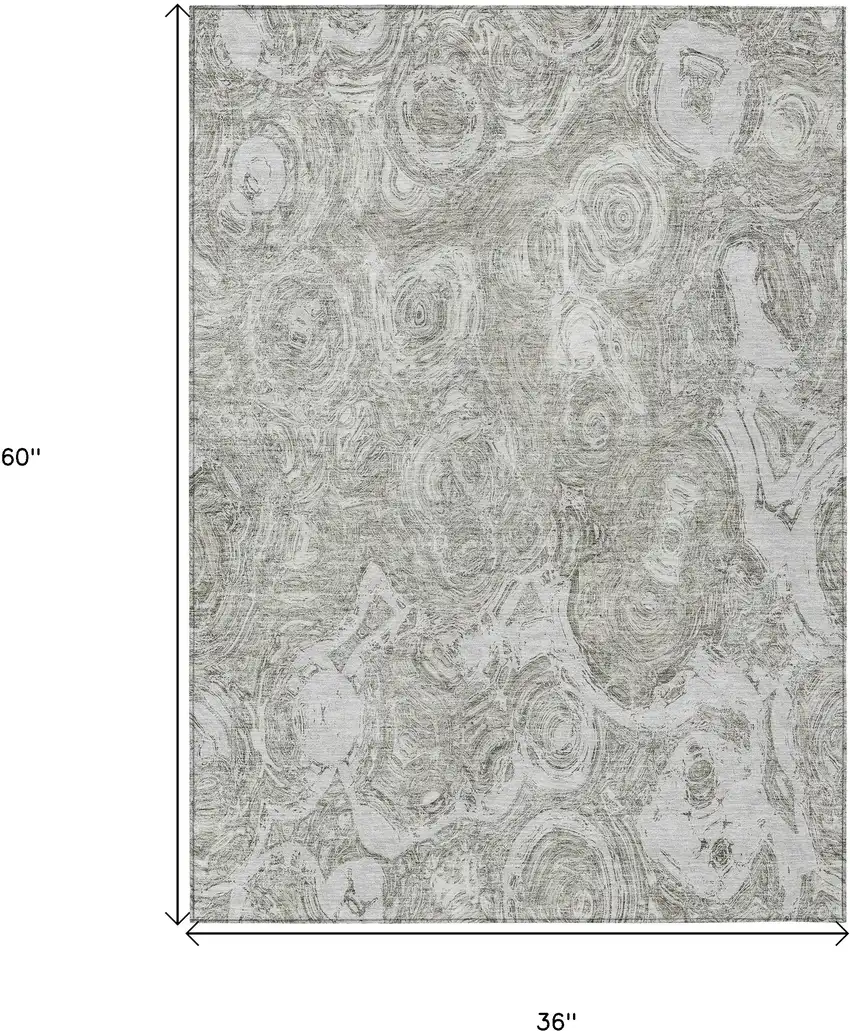 Ivory Taupe And Beige Abstract Washable Indoor Outdoor Area Rug