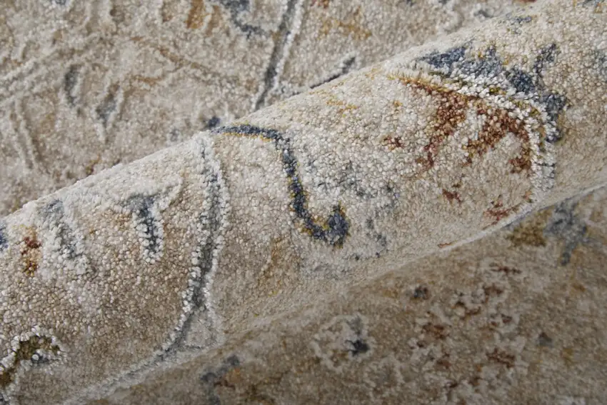 Add some artistry to your room with this 7-foot x 10-foot ivory taupe and blue abstract power loom worn faded area rug with fringe. This rectangle shaped rug features a abstract design in ivory taupe and blue to give it visual interest. A classic shape marries with good looking design for your space ideal for spaces with kids and pets, this rug is stain resistant to help repel stains and spilled liquids. Tassel ends bring a timeless and fashionable look to your interior. Area rugs help to give warmth and sense of home to your space. 79-inch H x 114-inch W x 0.43-inch D