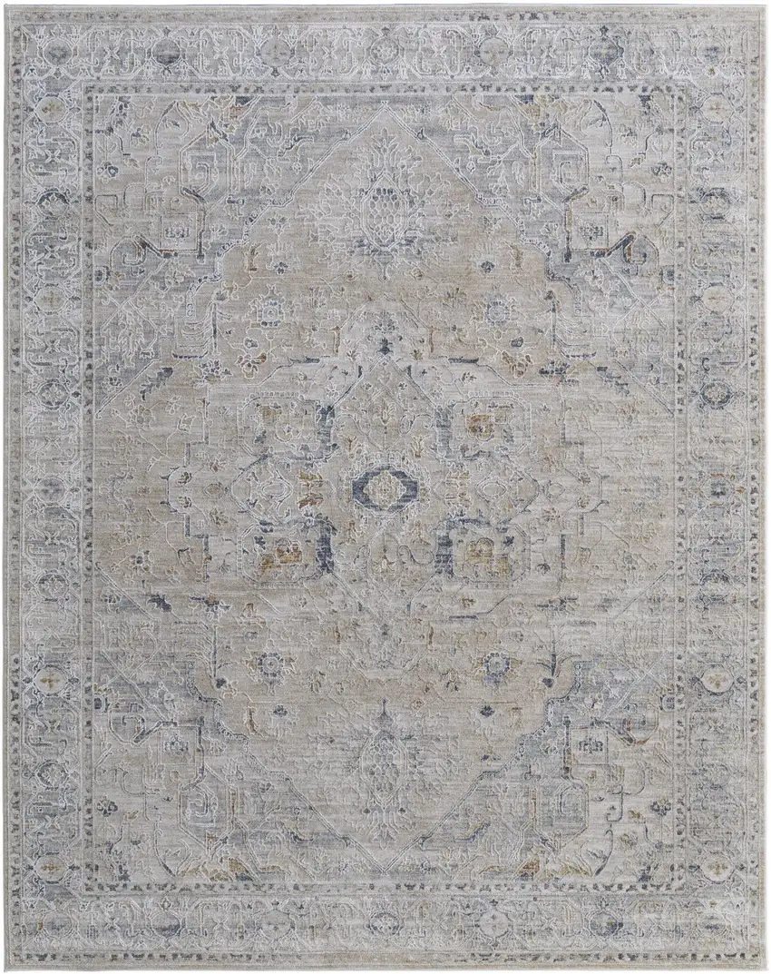 This 7-foot x 10-foot ivory taupe and blue oriental power loom worn faded area rug with fringe, is a great way to add warmth to a room. This rectangle shaped rug features a oriental design in ivory taupe and blue to give it visual interest. A classic shape marries with good looking design for your space ideal for spaces with kids and pets, this rug is stain resistant to help repel stains and spilled liquids. Tassel ends bring a timeless and fashionable look to your interior. Place this area rug against a hardwood or tile floor and it will enliven your living space with style and sophistication. 79-inch H x 114-inch W x 0.43-inch D