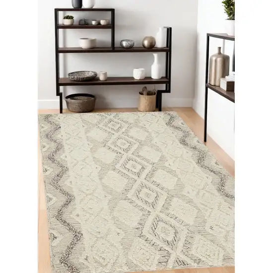 Ivory Taupe And Gray Wool Geometric Tufted Handmade Stain Resistant Area Rug