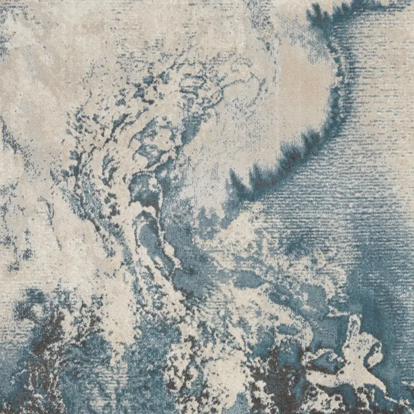 Ivory Teal Blue and Black Abstract Area Rug