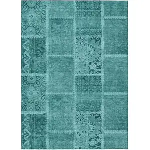Ivory Teal Blue and Black Abstract Non Skid Area Rug