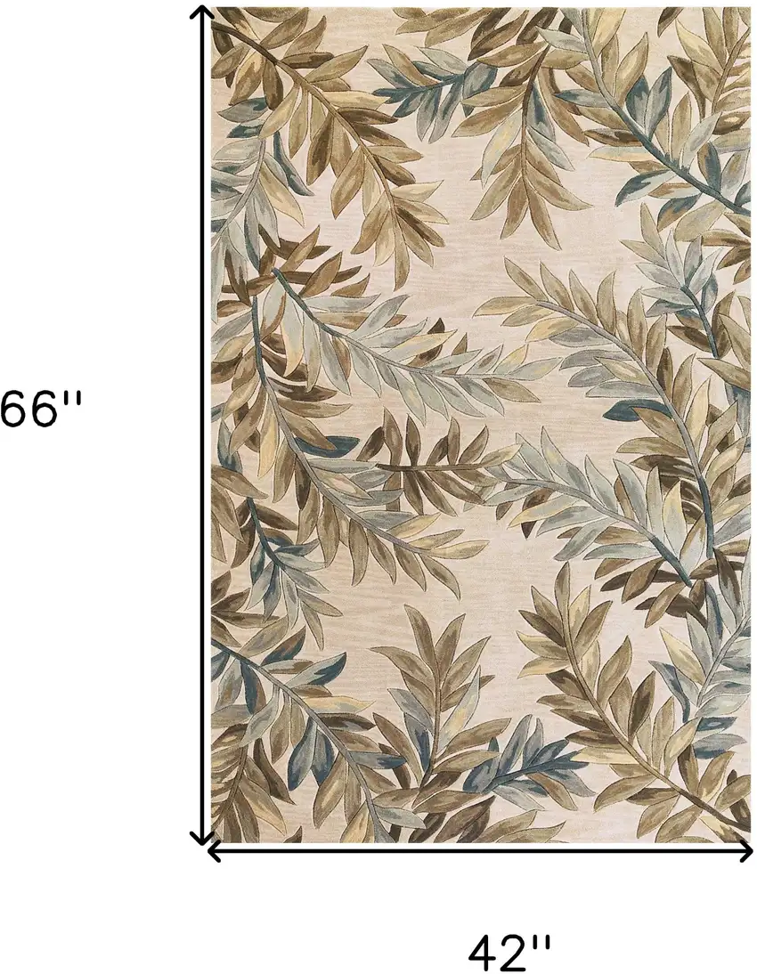Ivory Tropical Leaves Wool Indoor Area Rug