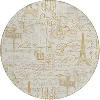 Khaki And Brown Damask Washable Indoor Outdoor Area Rug
