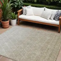 Khaki And Gold Floral Medallion Washable Indoor Outdoor Area Rug