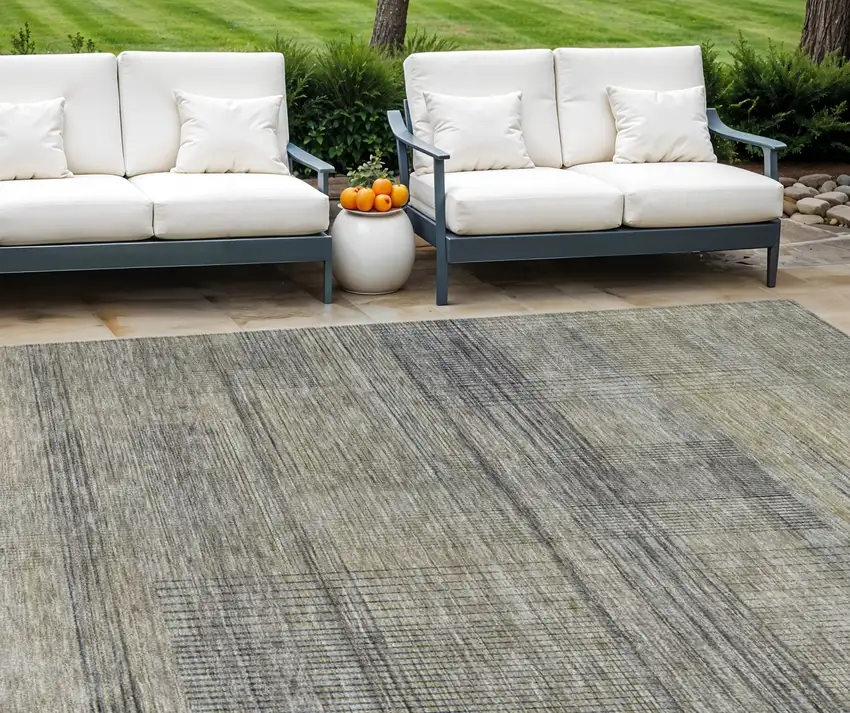 Set an inviting tone in your space with this 10-foot x 14-foot khaki beige and gray striped washable indoor outdoor area rug. This rectangle shaped rug features a striped design that will work well both indoors or out. A classic shape marries with good looking design for your living room, hall, bedroom, porch, patio, or poolside. Ideal for outdoor spaces or high traffic areas with kids and pets, this rug is made from heavy duty polyester that is stain resistant to help repel water, dirt, and stains. Versatile in use, durable, and easy to maintain, this rug is an ideal solution to add a decorative and inviting touch to your indoor or outdoor space. 120-inch h x 168-inch w x 0.19-inch d.