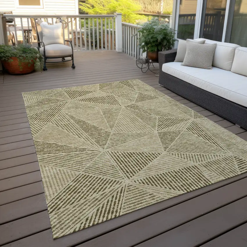 Khaki Brown And Beige Geometric Washable Indoor Outdoor Area Rug