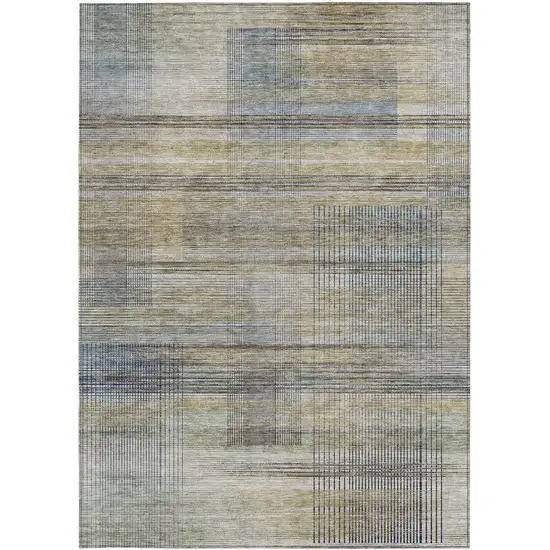 Khaki Tan And Beige Striped Washable Indoor Outdoor Area Rug