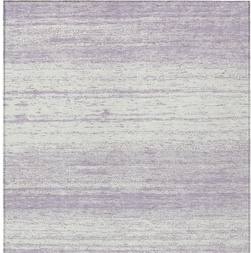 Lavender And Ivory Striped Washable Indoor Outdoor Area Rug