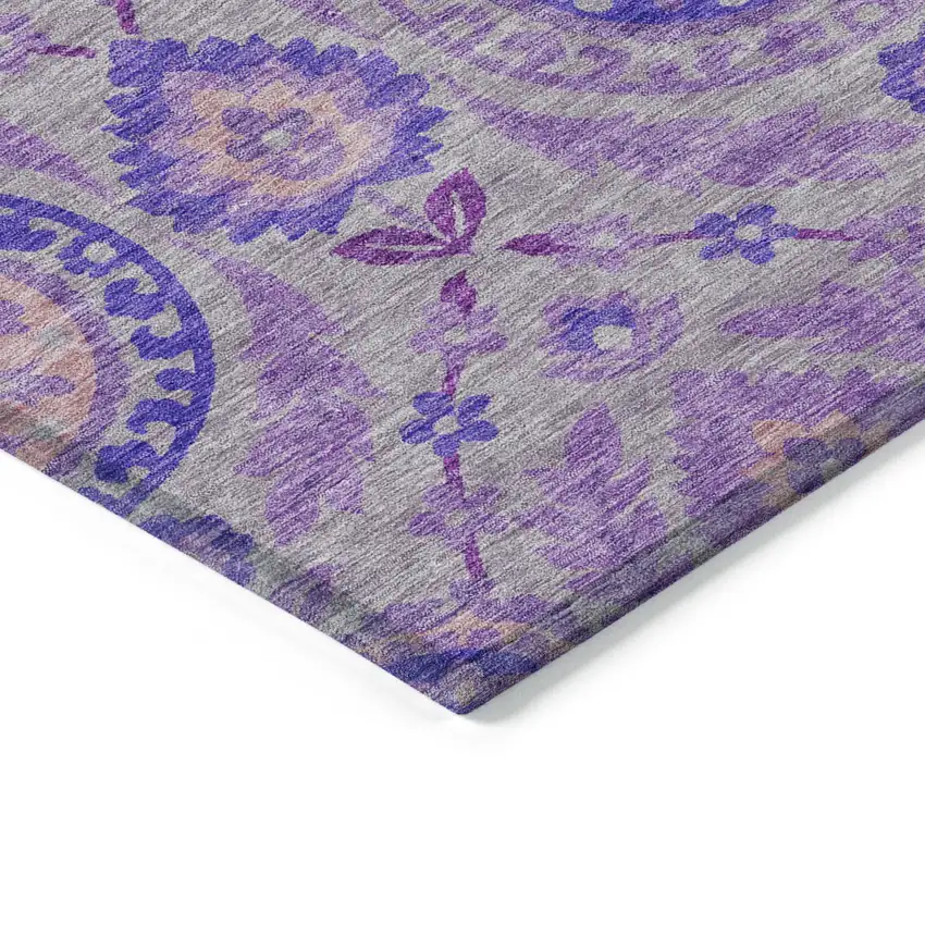 Lavender Lilac And Gray Floral Washable Indoor Outdoor Area Rug