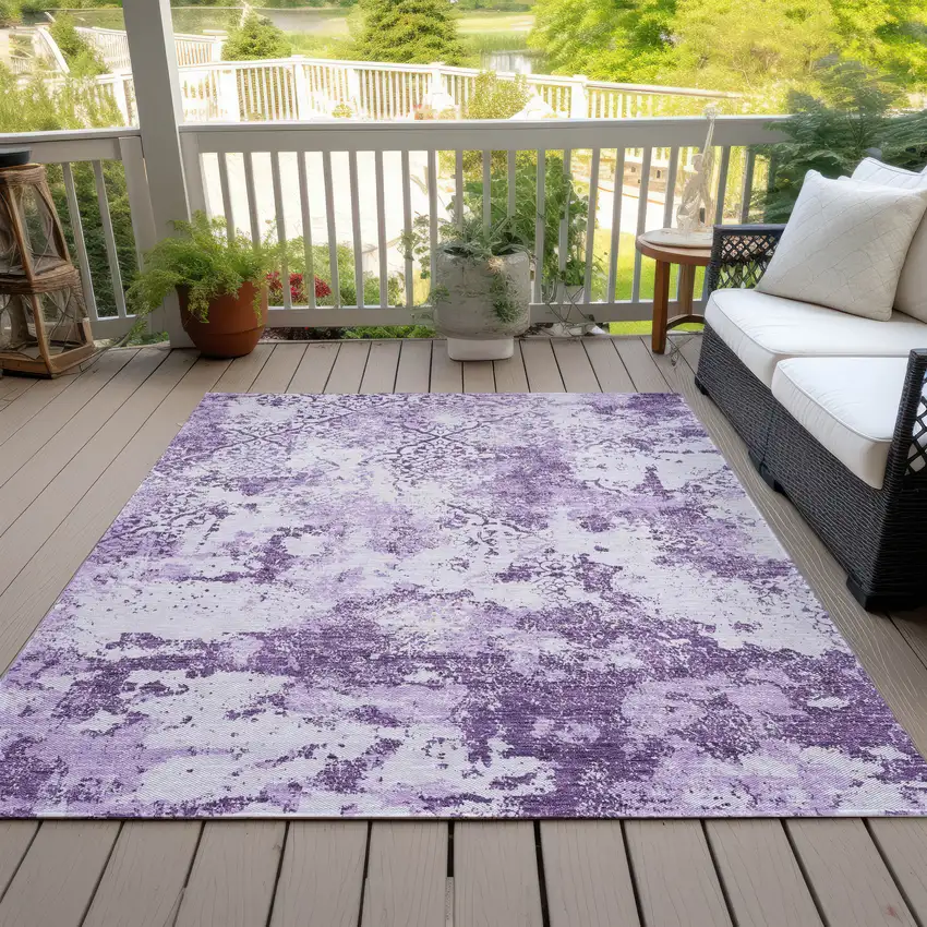 This 10-foot x 14-foot lavender purple and lilac floral washable indoor outdoor area rug, is a great way to add warmth to a room. This rectangle shaped rug features a floral design that will work well both indoors or out. A classic shape marries with good looking design for your living room, hall, bedroom, porch, patio, or poolside. Ideal for outdoor spaces or high traffic areas with kids and pets, this rug is made from heavy duty polyester that is stain resistant to help repel water, dirt, and stains. Makes a great way to dress up your patio, porch, or poolside, but also works well as a durable and easy to maintain option in the kitchen, family room, or mudroom. 120-inch h x 168-inch w x 0.19-inch d.