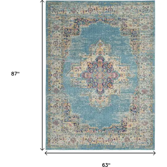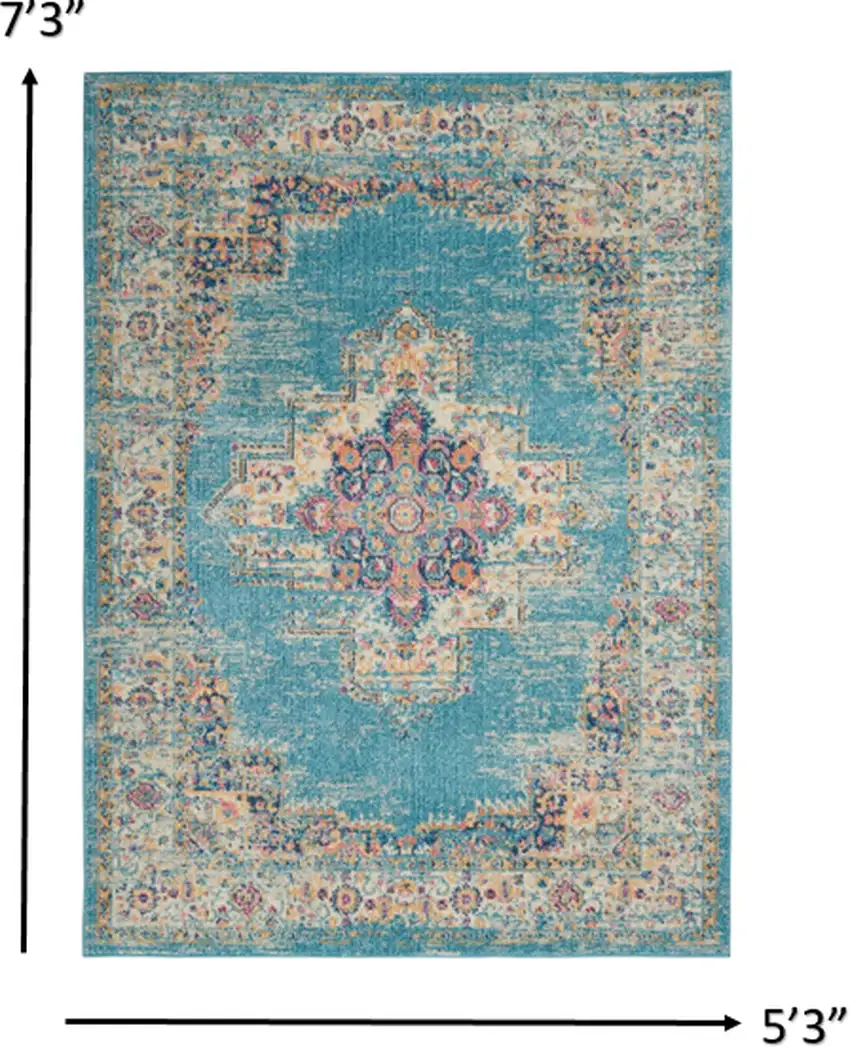 Inject some personality into your room with the Light Blue Distressed Medallion Area Rug. Its striking color palette, featuring varying shades of blue, adds vibrancy and life to your space. The distressed finish adds a touch of vintage charm, giving it a unique character that sets it apart from ordinary rugs.