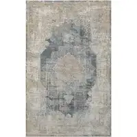 Light Blue Geometric Power Loom Area Rug With Fringe