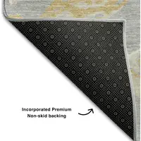 Add some artistry to your room with this 9-foot x 12-foot light gray ivory and gold floral medallion washable area rug with uv protection. Ideal for spaces with kids and pets, this rug is stain resistant to help repel dirt and spilled liquids. Built to last, this rug crafted from polyester fibers is known for its durability and long lasting appeal. Rugs are a great way to showcase your style, hide imperfections, warm your home and reduce noise. This larger sized, traditional styled rug is ready to create a focal point or statement piece in your room. 108.00-inch h x 144.00-inch w x 0.39-inch d.