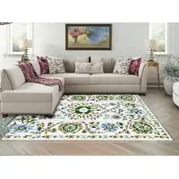 Lilac And Ivory Floral Washable Area Rug With UV Protection