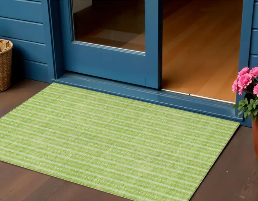 Lime Green And Ivory Striped Washable Indoor Outdoor Area Rug