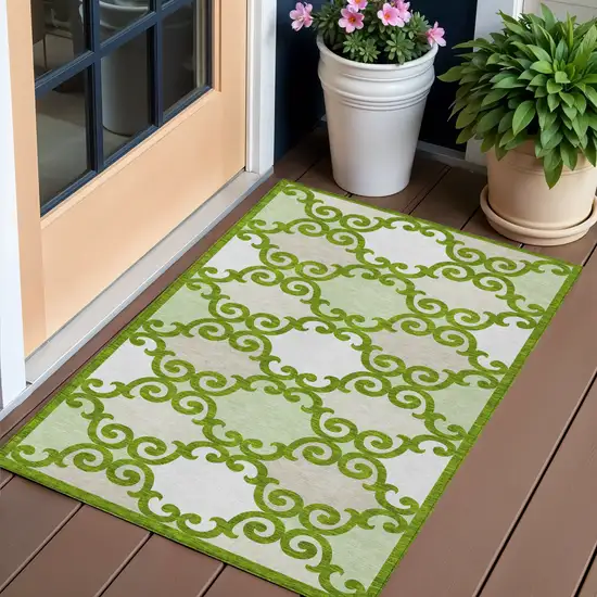 Lime Green And Ivory Trellis Washable Indoor Outdoor Area Rug