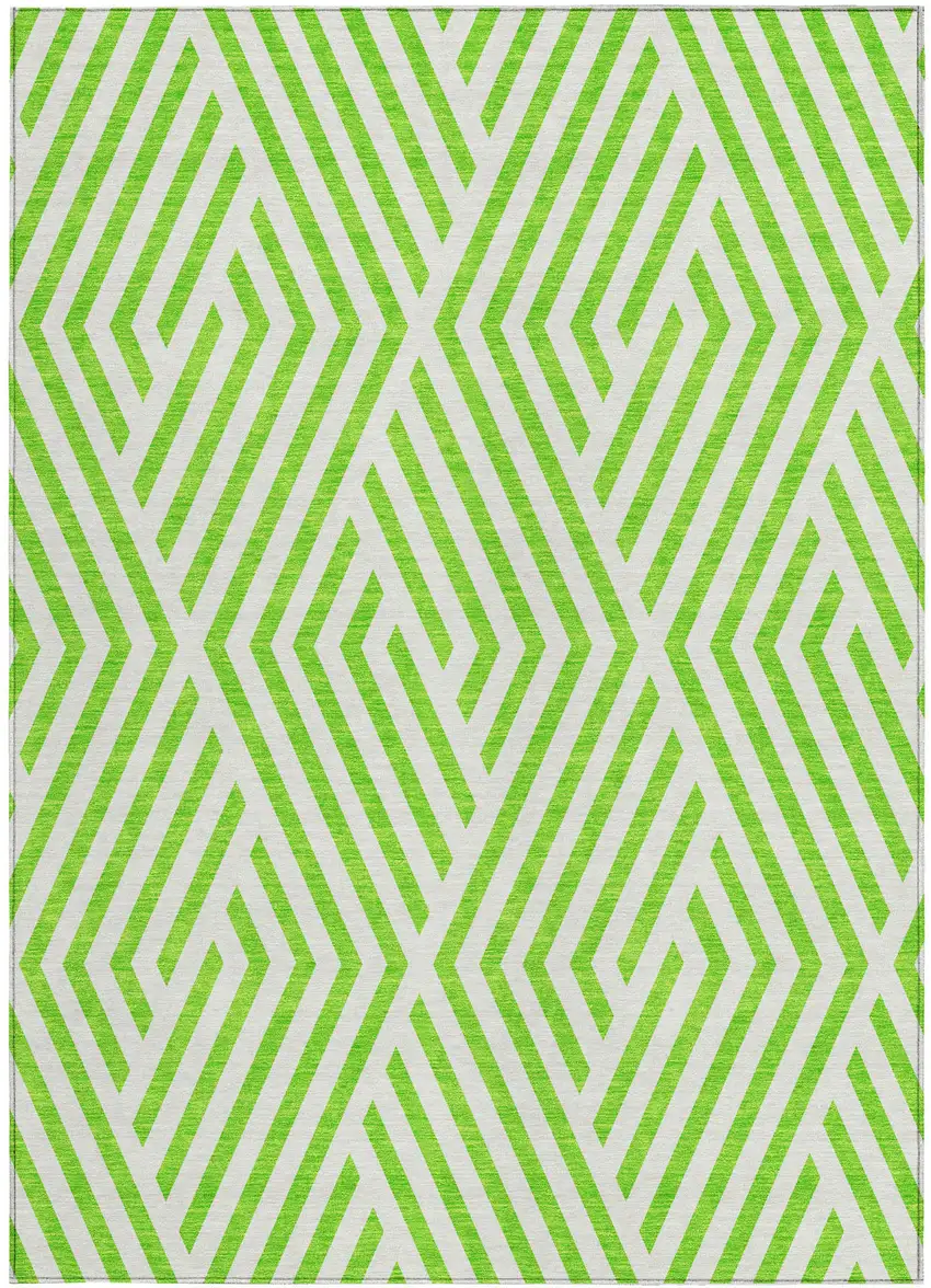 Add some artistry to your room with this 5-foot x 8-foot lime green and white geometric washable stain resistant non skid indoor outdoor area rug. This rectangle shaped rug features a geometric design in lime green and white to give it visual interest. A classic shape marries with good looking design for your space ideal for spaces with kids and pets, this rug is stain resistant to help repel stains and spilled liquids. Area rugs help to give warmth and sense of home to your space. 60-inch H x 90-inch W x 0.19-inch D