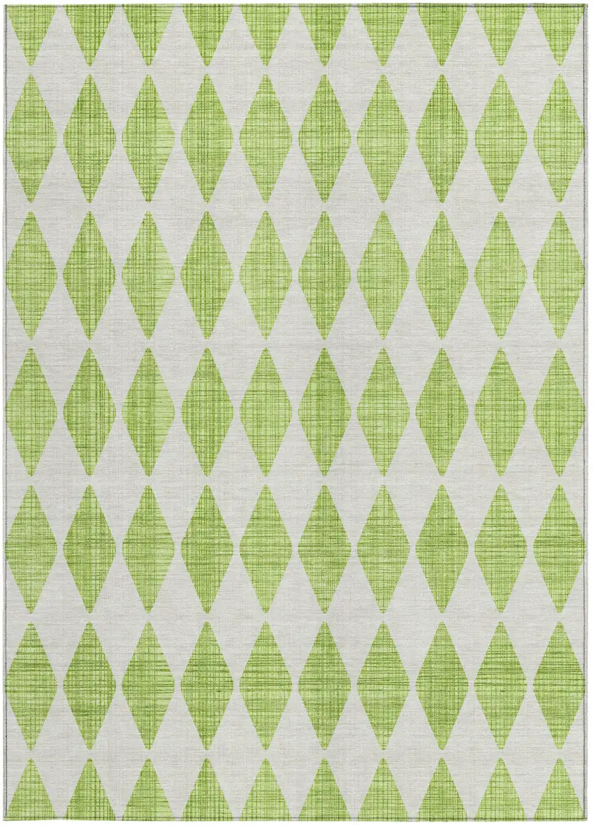Set an inviting tone in your space with this 9-foot x 12-foot lime green geometric washable indoor outdoor area rug. This rectangle shaped rug features a geometric design that will work well both indoors or out. A classic shape marries with good looking design for your living room, hall, bedroom, porch, patio, or poolside. Ideal for outdoor spaces or high traffic areas with kids and pets, this rug is made from heavy duty polyester that is stain resistant to help repel water, dirt, and stains. Makes a great way to dress up your patio, porch, or poolside, but also works well as a durable and easy to maintain option in the kitchen, family room, or mudroom. 108-inch h x 144-inch w x 0.19-inch d.