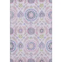 Lime Green Teal And Ivory Tribal Washable Area Rug With UV Protection