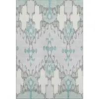 Linen And Blue Oriental Washable Area Rug With UV Protection