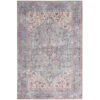 Linen And Blue Oriental Washable Area Rug With UV Protection