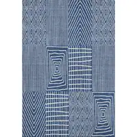 Linen Ivory And Blue Tribal Washable Area Rug With UV Protection