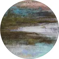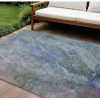 Linen Teal Blue And Copper Abstract Washable Indoor Outdoor Area Rug