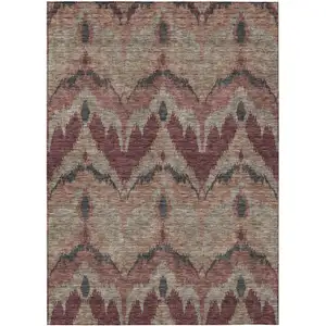 Merlot And Charcoal Abstract Washable Indoor Outdoor Area Rug