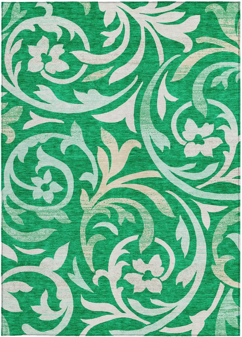 Mint Green And Ivory Floral Washable Indoor Outdoor Area Rug