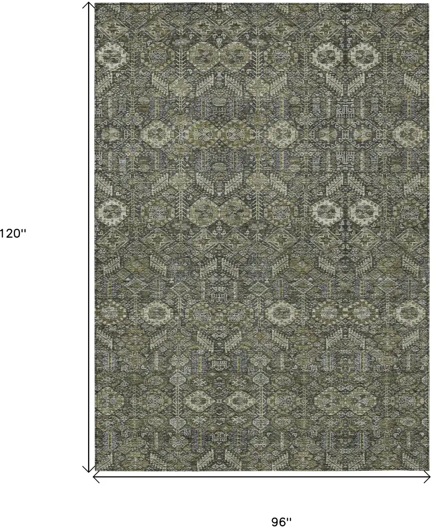Moss Green and Gray Floral Washable Non Skid Indoor Outdoor Area Rug