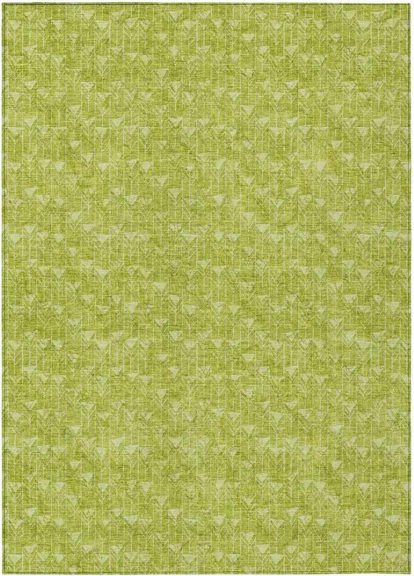 Add great coloration and comfortable texture to your space with this 9-foot x 12-foot moss green geometric washable stain resistant non skid indoor outdoor area rug. This rectangle shaped rug features a geometric design in moss green to give it visual interest. A classic shape marries with good looking design for your space ideal for spaces with kids and pets, this rug is stain resistant to help repel stains and spilled liquids. Area rugs help to give warmth and sense of home to your space. 108-inch H x 144-inch W x 0.19-inch D