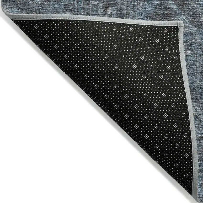 Navy and Black Oriental Washable Non Skid Indoor Outdoor Area Rug