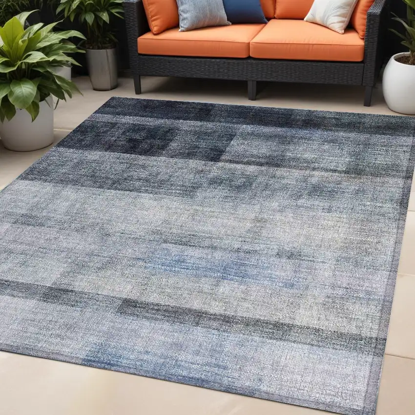Navy and Gray Ombre Washable Non Skid Indoor Outdoor Area Rug
