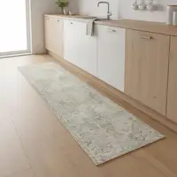 With its captivating navy and green geometric design, this runner rug is a superb choice for those who crave sophistication and style. The intricate patterns and exquisite color combination make it a piece of art that will instantly catch the eye and become the focal point of any room. Whether your home decor theme is modern, contemporary, or traditional, this versatile rug effortlessly complements and enhances your existing design elements.